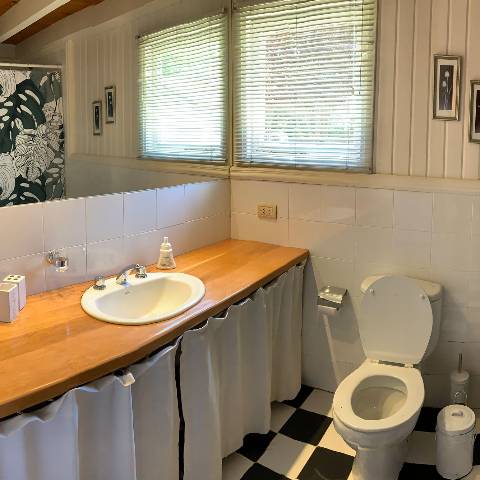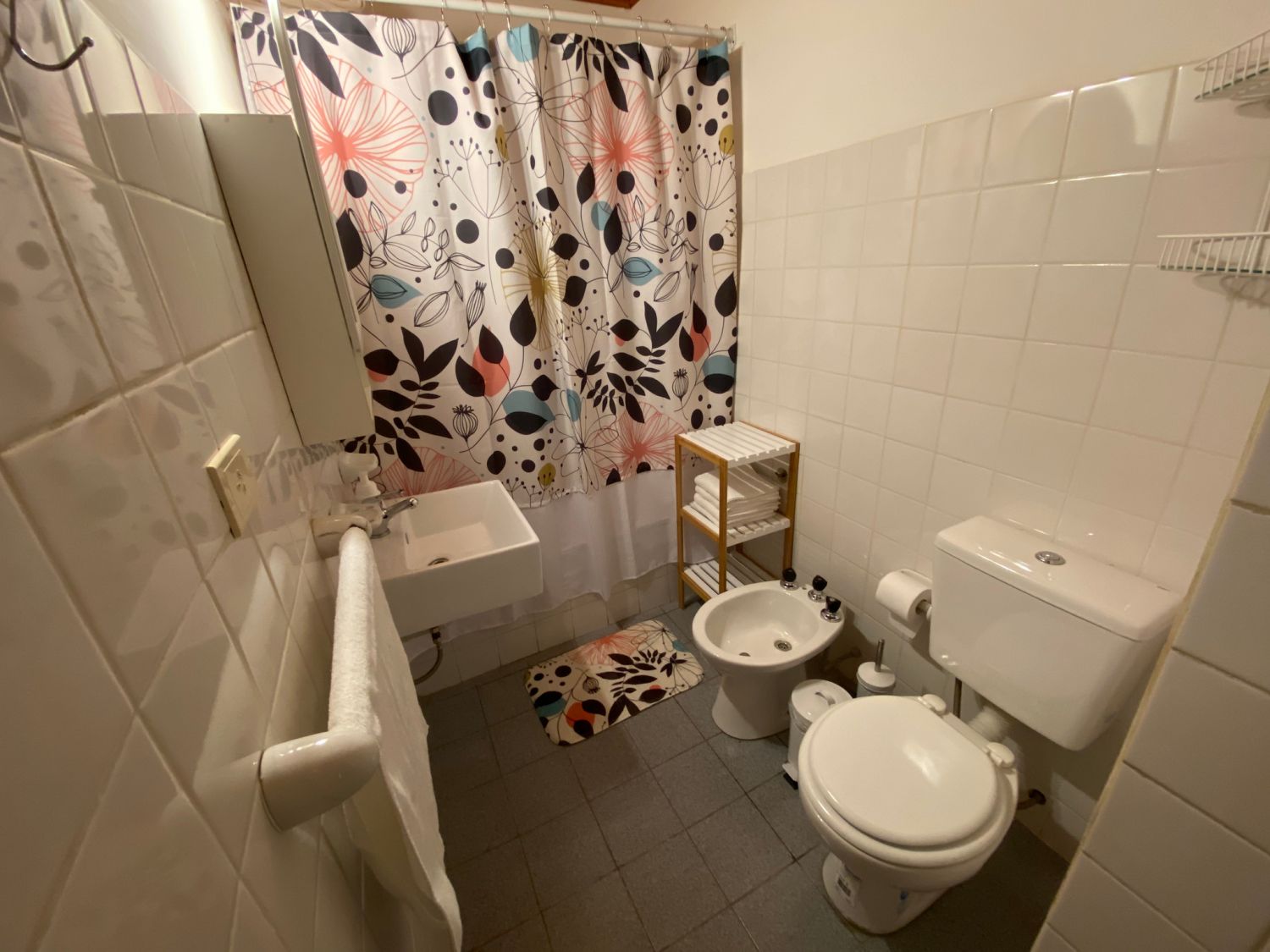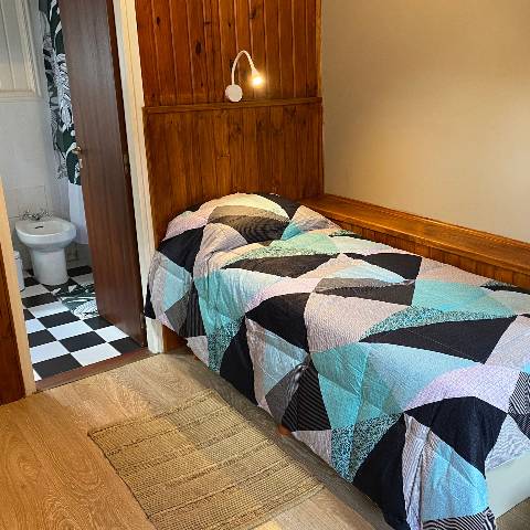 En planta baja se encuentra otra habitación con cama de una plaza con Sommier La Cardeuse y baño completo con bañera.