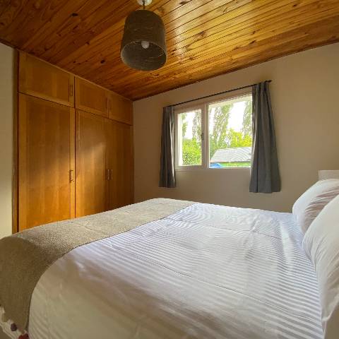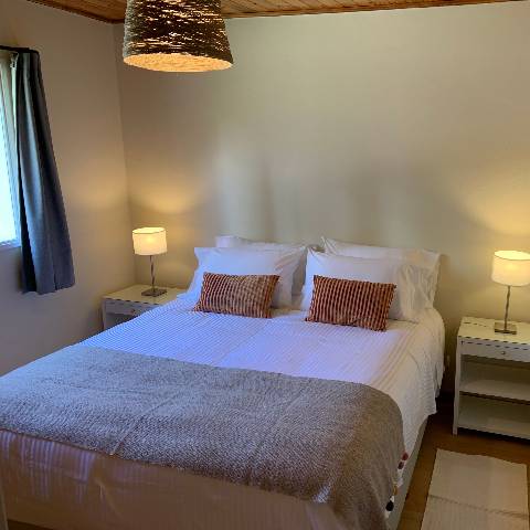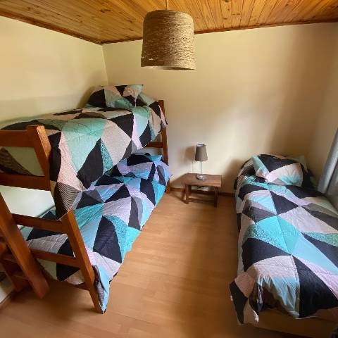 Una habitación con cama matrimonial (Sommier La Cardeuse Queen) que puede convertirse en dos camas de una plaza y otra habitación con cama de una plaza (Sommier La Cardeuse) y una cama marinera.