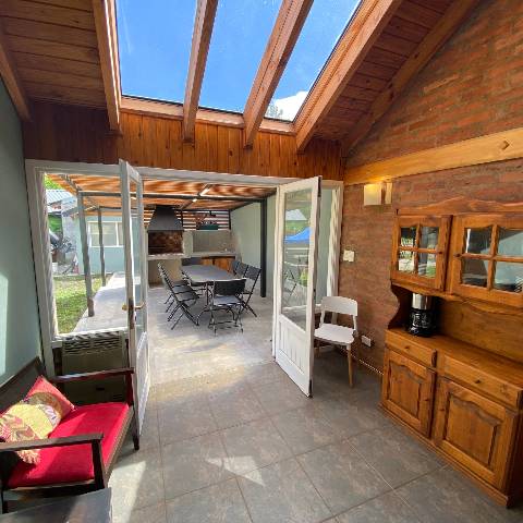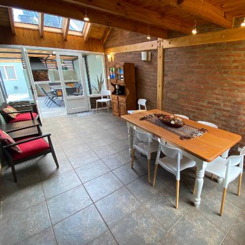 El comedor diario está diseñado para 8 personas y cuenta con una doble puerta que conecta con el jardín exterior donde se encuentra la parrilla con quincho techado y mesa con 8 sillas simil Ratán. A pocos metros se encuentra un amplio lavadero con lavarropas.