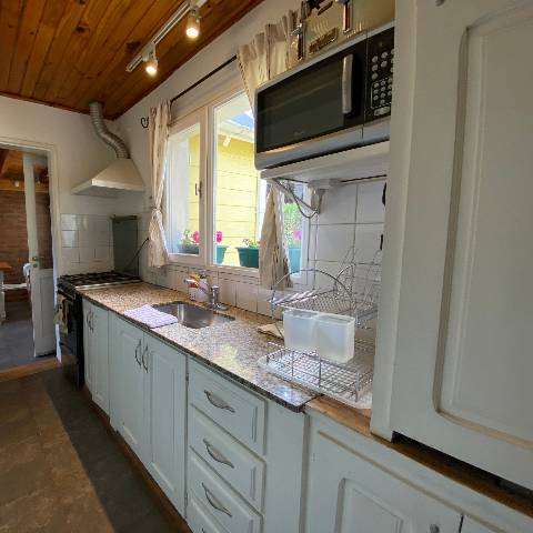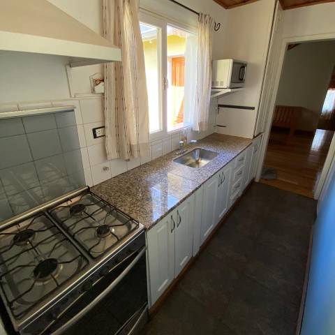 La cocina cuenta con horno a gas y está totalmente equipada con Heladera con freezer, Microondas, Pava Eléctrica, Tostadora, Cafetera Eléctrica, vajilla completa y utensilios de cocina.