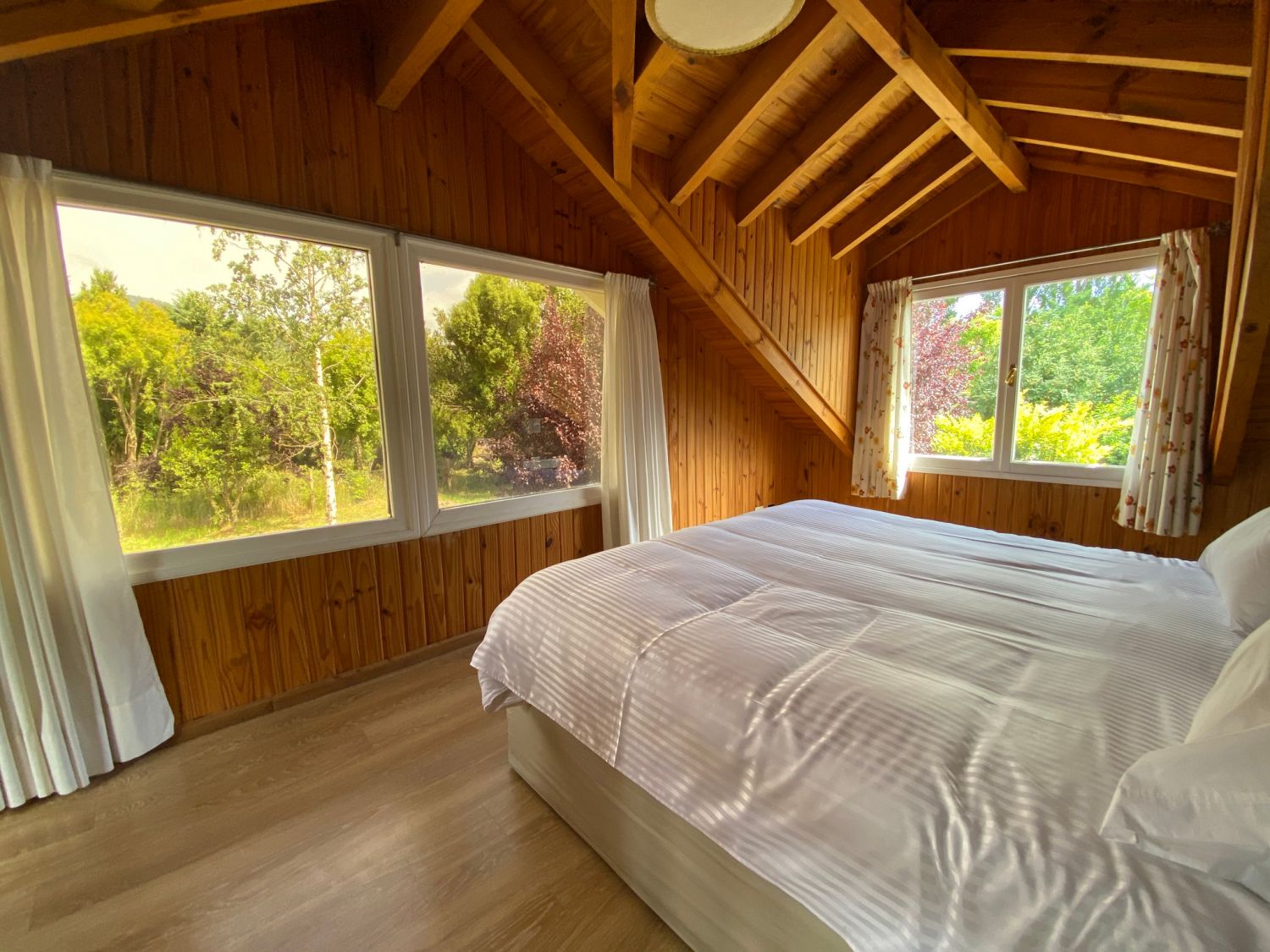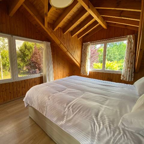 La Habitación Principal está construida en dos plantas; en la planta alta se encuentra la habitación matrimonial (Sommier La Cardeuse Queen) con amplios ventanales.